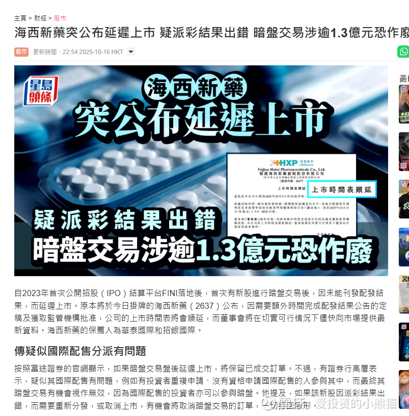 之前还媒体报道,有证券行高层表示,疑似其国际配售有问题,例如有投资者重复申请、没有资格申请国际配售的人参与其中,而最终其暗盘交易有机会视作无效,因为国际配售的