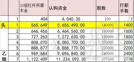 乙头需要认购资金566,乙组的各档融资所需要的本金还有融资金额对应如下表: