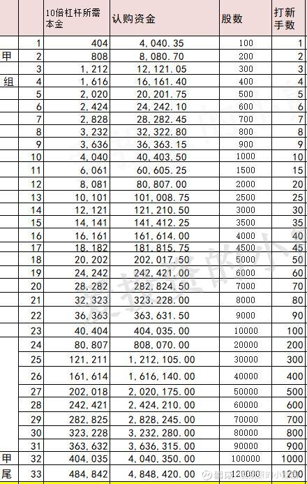 甲组的各档融资所需要的本金还有融资金额对应如下表: