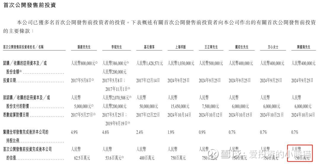 2017年12月A轮融资由基石亿享(基石资本旗下基金)投资5000万元人民币,获得12.5%股份,对应投后估值4亿元。并签订对赌协议:约定5年内(2022年底前)未上市,基石亿享有权要求回购。后因未如期上市,2023年4月公司以6210万元回购其部分股权(约10%),剩余2.6%股份保留至IPO ,这个已经到期了,赶现在上市了。