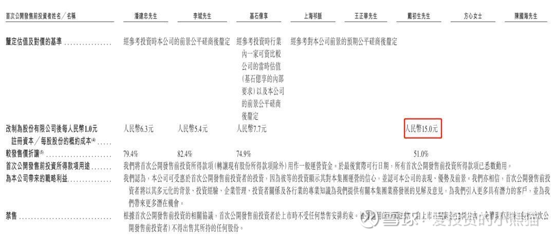 虽然公司发行的估值十几二十多亿,但实际上h股流通的市值就6-9亿左右,基本属于小票,离港股通90-100亿的门槛离的太远太远了,再结合之前已上市过的一些b10制度下10几亿流通市值票来看,就别对他有这种干到100亿的憧憬了。