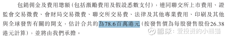 然后这个票招股书上按发售价26.38港元计算,公开的上市所有开支总额约为7860万港元,募资额约10.00亿港元,占比约7.86%,开支相比募资额算是比较少了。