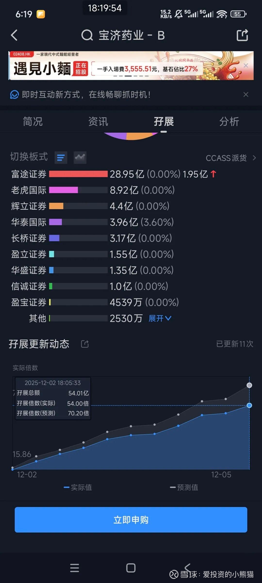 目前孖展已超购54倍,可能是最近新股太多,资金周转不开,孖展后面会起飞,大概率1千倍以上