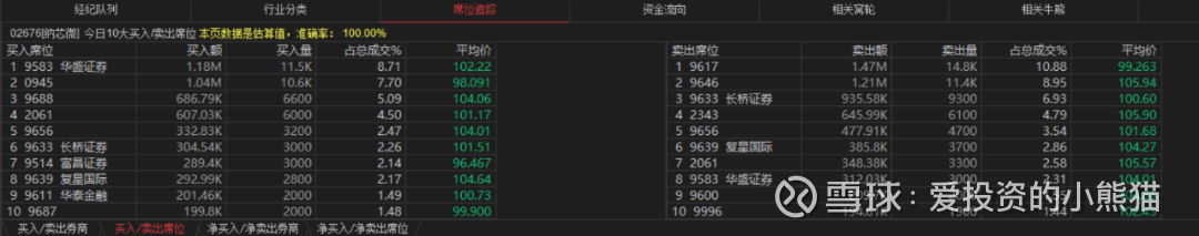 纳芯微(02676.HK)买盘席位有0945、9583、9688、2061等,卖盘第一席位是9617。