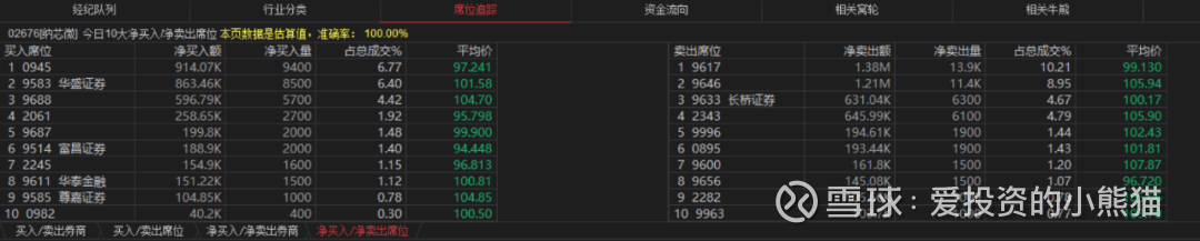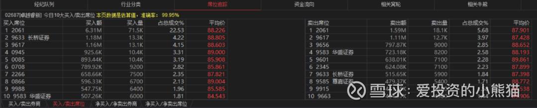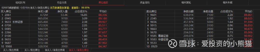 卓越睿新(02687.HK)买盘席位有2061、0945、9633等,卖盘第一席位是散户为主的9601。