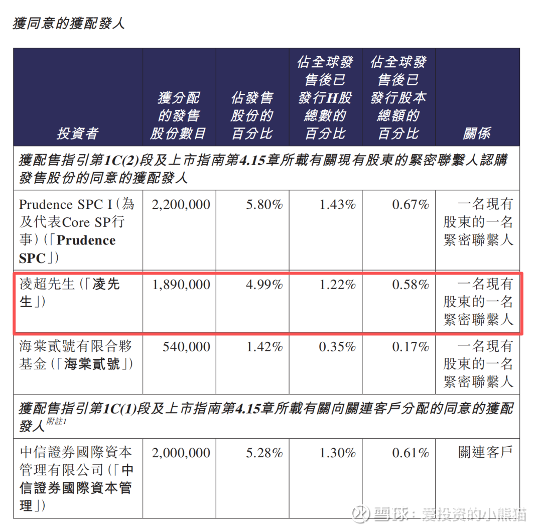 宝济药业-B(02659.HK) 国配货是比较分散,前25大承配人上市后所持股份数目占上市后已发行股份总数18.82%。宝济药业-B(02659.HK) 这个票没有稳价人,也没有绿鞋。本来也不需要这些,今天上市首日已经冲刺到流通盘96个亿了,如果说港股通的话,在这个位置一定是够的,那如果意图不单单是港股通的话, 比如msci或者更多其他指数,那未来会有多少?谁也不知道。
