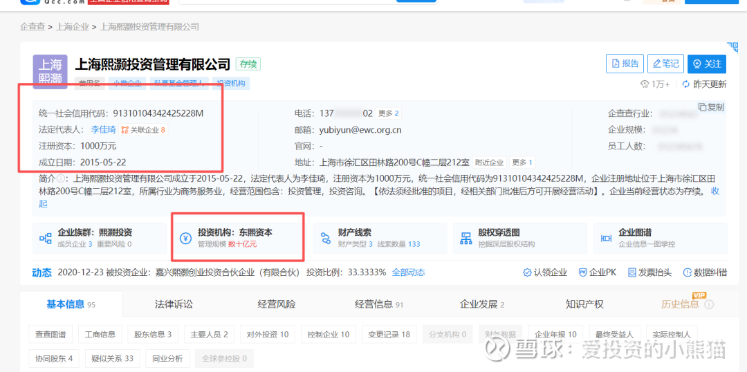 我们在企查查可以查下,李佳琦不仅是知名主播,也是上海熙灏的实际控制人之一,通过这家公司进行投资活动。
