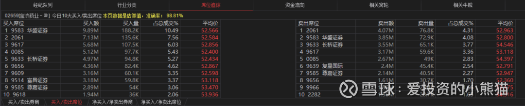 宝济药业-B(02659.HK) 买盘席位有9583、9609、2061、0085等,卖盘第一席位是9639。0950和0945分别在卖盘第二席位和第六席位。