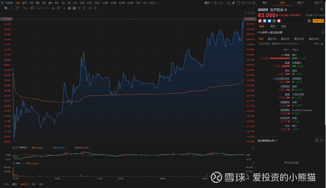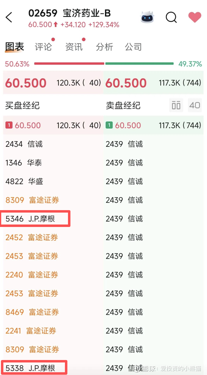 $宝济药业-B(02659)$ 今日上市表现极为亮眼,开盘即大涨129%,反映了市场对其产品管线和技术平台的高度认可。今天jp摩根作为主买首当其冲,国际机构都在抢货了,甚至连新股开盘的集合竞价的时候人家就在抢了。