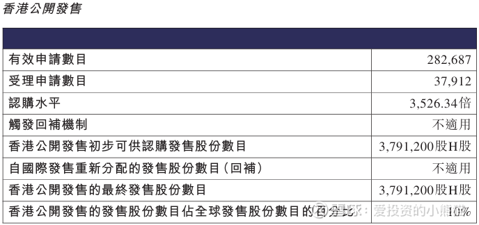 配售情况:282687人认购,这次公配3526.34倍,由于执行分配机制B, 回拨比率无,国配有6.59倍,一手中签率7.00%,公开认购不能稳中,同时乙组21913人申购,其中顶头槌申购1285张,获配率0.01%-0.04%。