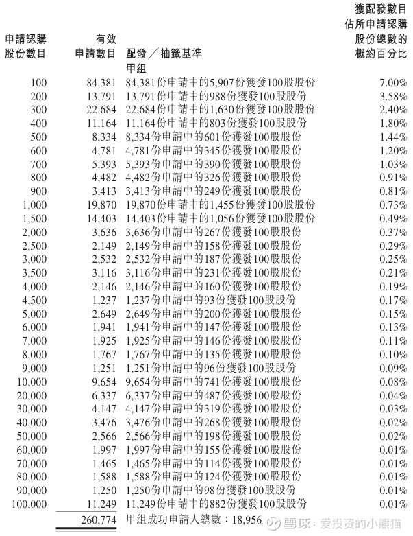 有17738人中签100股,有1218人顶头槌认购中签100股,还有67人