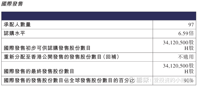 宝济药业-B(02659.HK) 国际配售总共97人,认购额6.59倍。