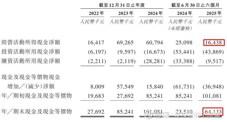 截至2025年6月30日,公司账上现金有人民币0.64亿元,经营活动现金流为0.16亿元。