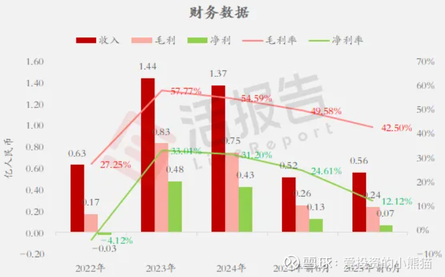 收入分别约为人民币0.63亿元、1.44亿元、1.37亿元、0.52亿元、0.56亿元,2025年前6月同比+8.48%;