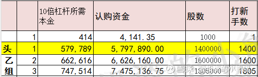 乙头需要认购资金580万,乙组的各档融资所需要的本金还有融资金额对应如下表: