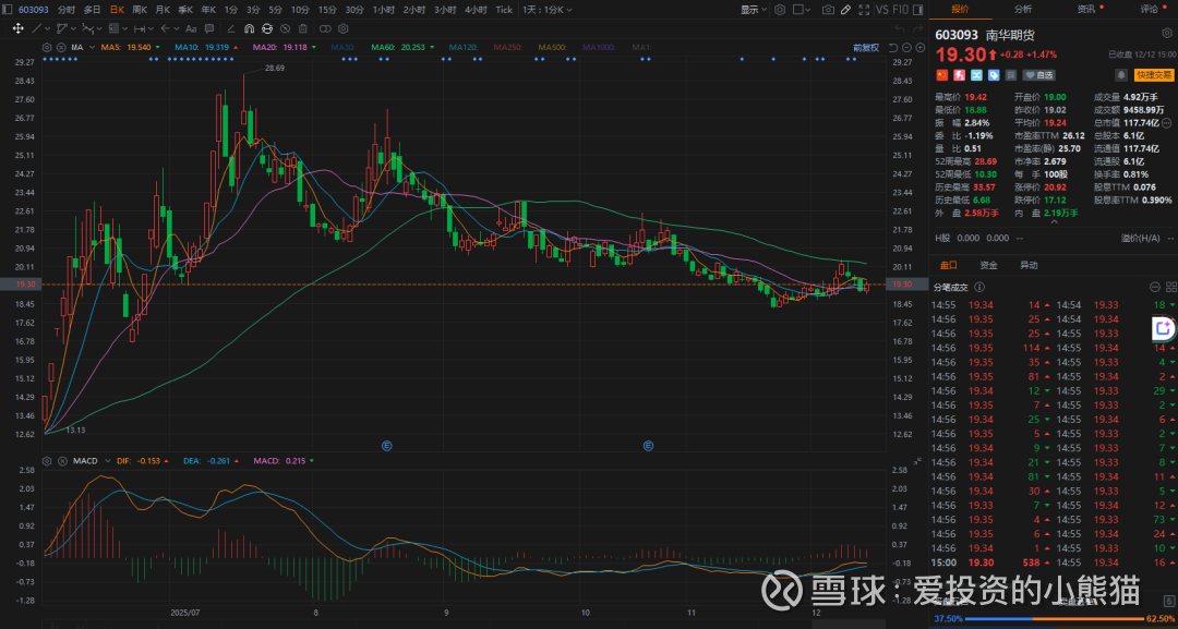 南华期货佣金及手续费分别约为人民币4.98亿、6.12亿、5.42亿、2.72亿、2.35亿,2025年前6月同比-13.88%;