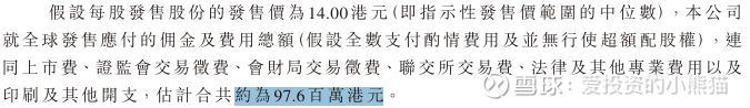 然后这个票招股书上按发售价的中位数14.00港元计算,公开的上市所有开支总额约为9760万港元,募资额约15.07亿港元,占比约6.48%,开支相比募资额算是比较少了。