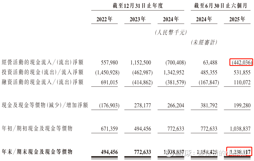 截至2025年6月30日,公司账上现金有人民币12.38亿元,经营活动现金流为-4.42亿元。