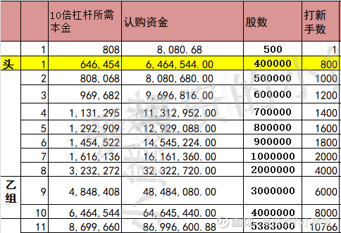 乙头需要认购资金647万,乙组的各档融资所需要的本金还有融资金额对应如下表: