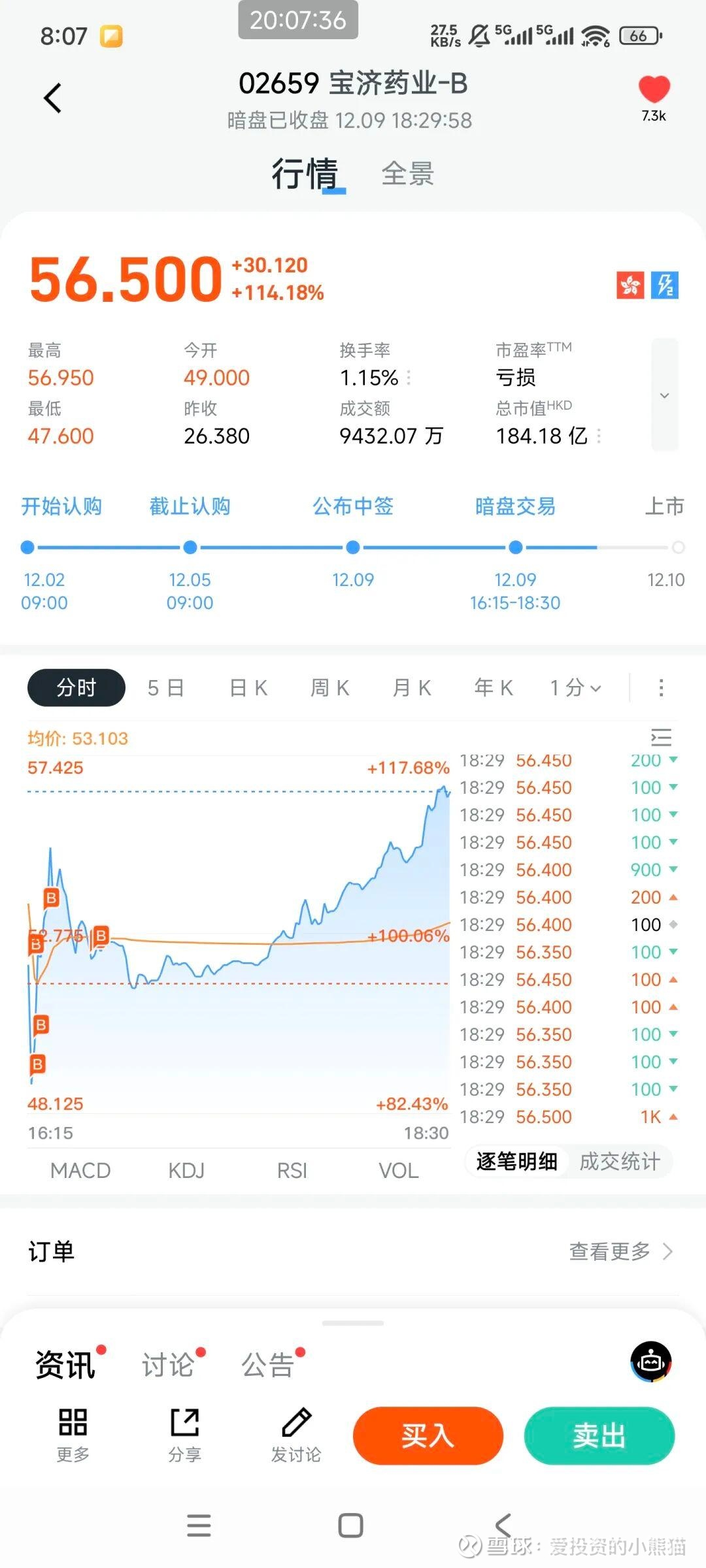 如果火起来的话,这个票先考虑能中签多少再说收益把,大概率又会是公配难中签,冲刺个两三千亿的孖展。现在b10机制下募资规模小的票中签率都很低。毕竟上一个医药股宝济涨的太好了。暗盘我们几乎最低价买的货到现在还留着的,这个票新股已经涨了160%!我们捞货的部分都30%涨幅了。不过也不能奢望每个票都是宝济。