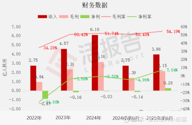 公司收入分别约为人民币2.75亿、4.57亿、6.10亿、2.75亿、3.96亿,2025年前6月同比+44.10%;