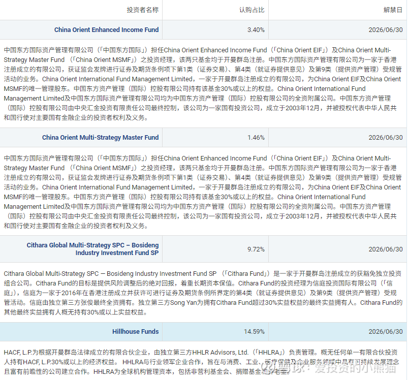 Cithara(信廷):认购2000万美元,是继高瓴之后的第二大基石投资者,体现了国际资本对中国硬科技企业的信心。