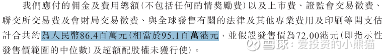 然后这个票招股书上按发售价的中位数72.00港元计算,公开的上市所有开支总额约为9510万港元,募资额约16.00亿港元,占比约5.94%,开支相比募资额算是比较少了。