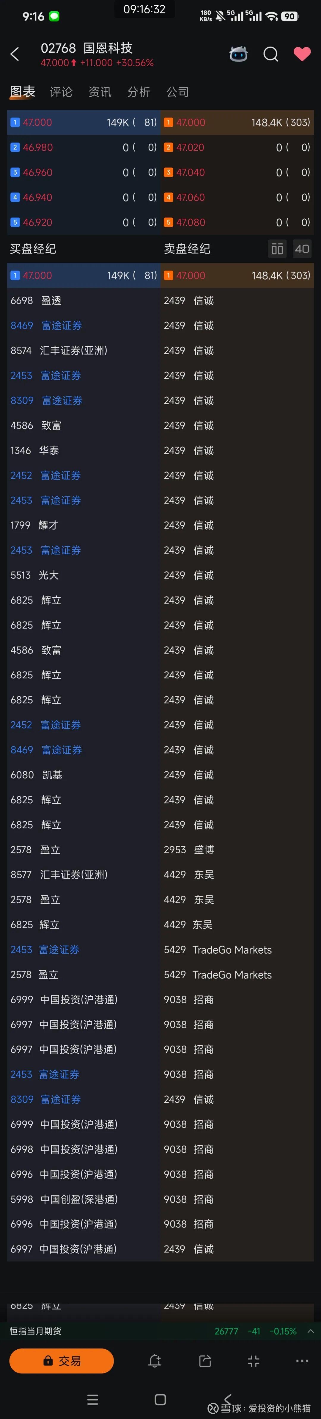 暗盘一堆机构都有买入,0866席位。0945席位,2266席位,这几个都是港股大盘股才会来的机构,所以暗盘我们自己也是买了不少,买的时候也是希望开盘有跑的机会。