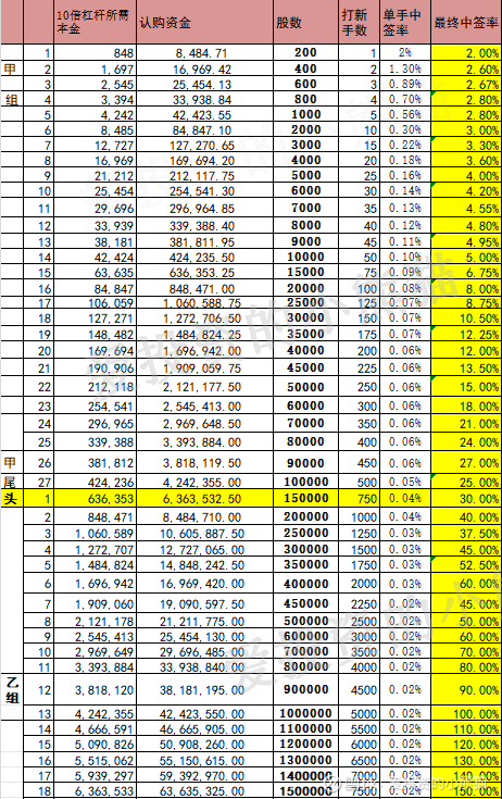 乙组有7319人中签,总共中签150万股,货值5400万港元。顶头槌货值7200-14400港元,