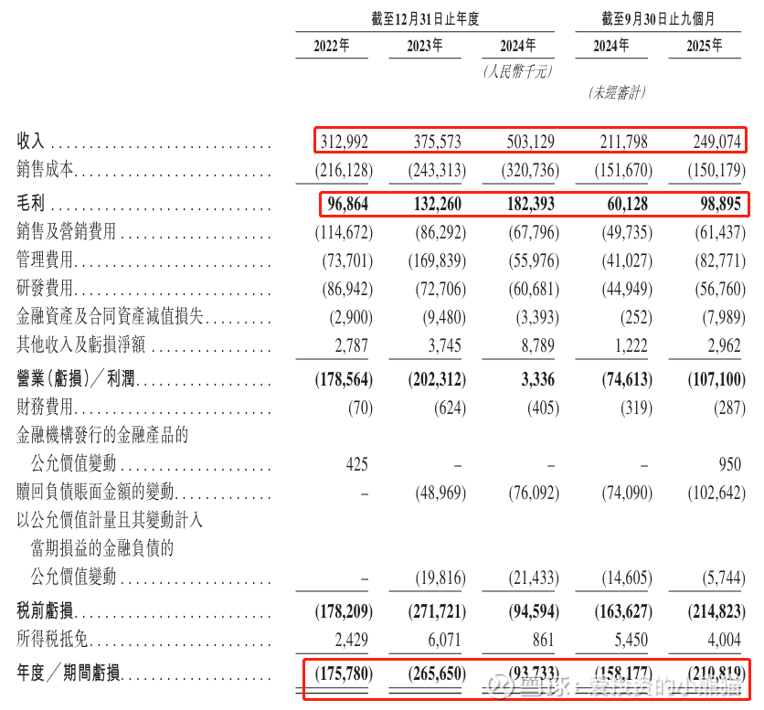收入分别约为人民币3.13亿元、3.76亿元、5.03亿元、2.12亿元、2.49亿元,2025年前9月同比+17.60%;