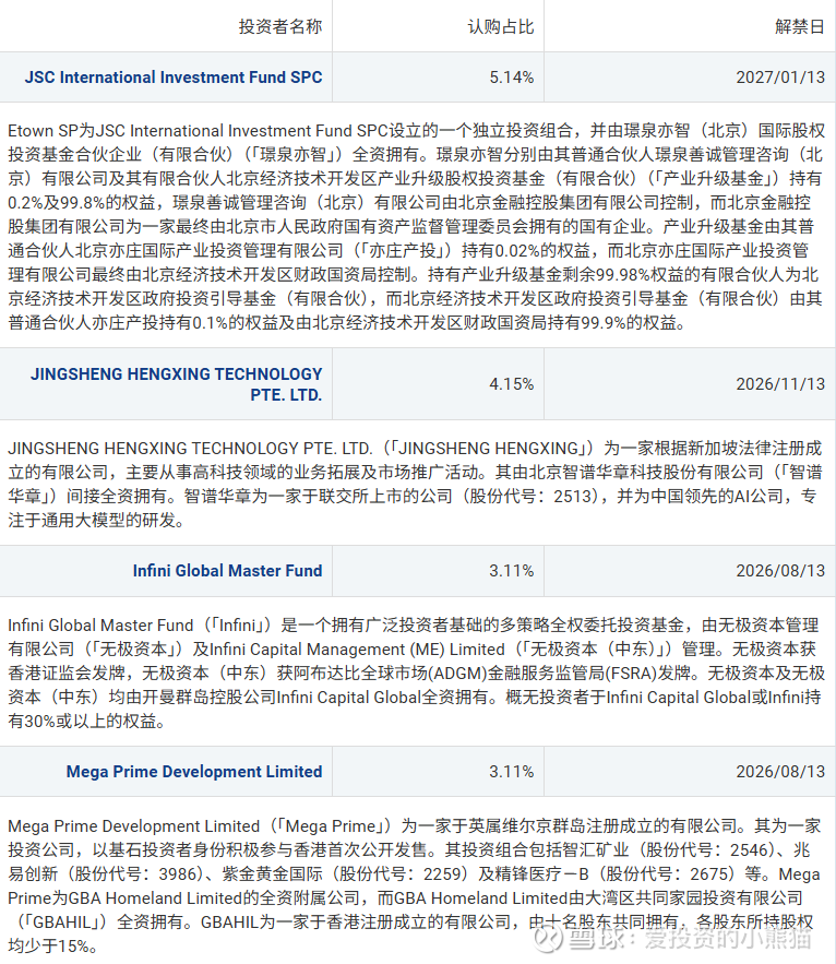 该主体是本次IPO中占比最高的基石投资者,其核心投资主体为Etown SP——这是为承接本次投资专门设立的独立投资组合,由璟泉亦智(北京)国际股权投资基金合伙企业(有限合伙) 全资拥有。