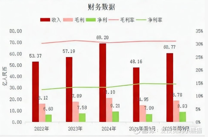 收入分别约为人民币53.37亿元、57.19亿元、69.20亿元、48.16亿元、60.77亿元,2025年前9月同比+26.19%;