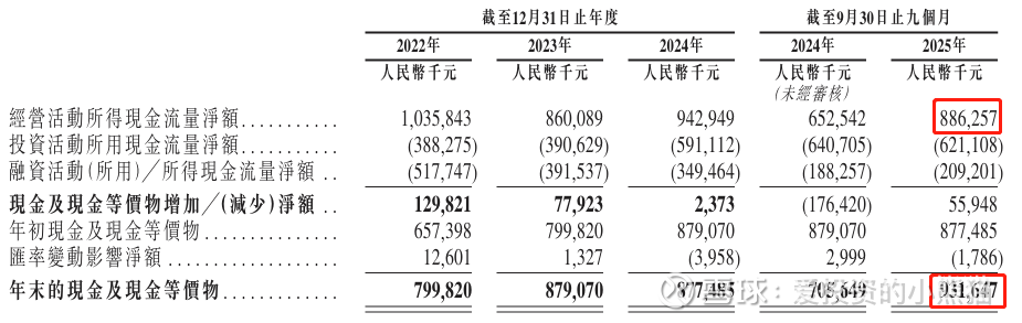 截至2025年9月30日,公司的账上现金约为9.32亿元人民币,经营现金流约为8.86亿元人民币。