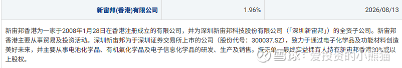 4. 新宙邦(香港)有限公司(认购占比1.96%):A股上市公司新宙邦的境外子公司,作为全球领先的电子化学品及新能源材料提供商,其投资体现了新能源产业资本的协同布局,与沃尔核材在新能源电力传输领域形成潜在业务联动。