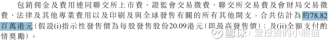 然后这个票招股书上按发售价20.09港元计算,公开的上市所有开支总额约为7882万 港元,募资额约28.12亿港元,占比约2.80%,开支相比募资额算是特别少了。