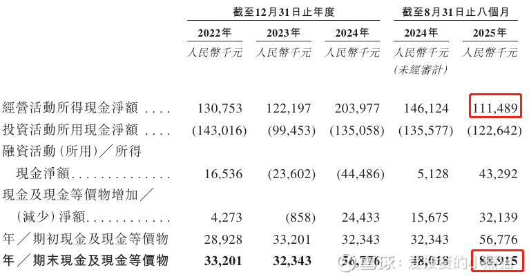 截至2025年8月31日,账上现金约人民币0.89亿元,经营现金流为1.11亿元。