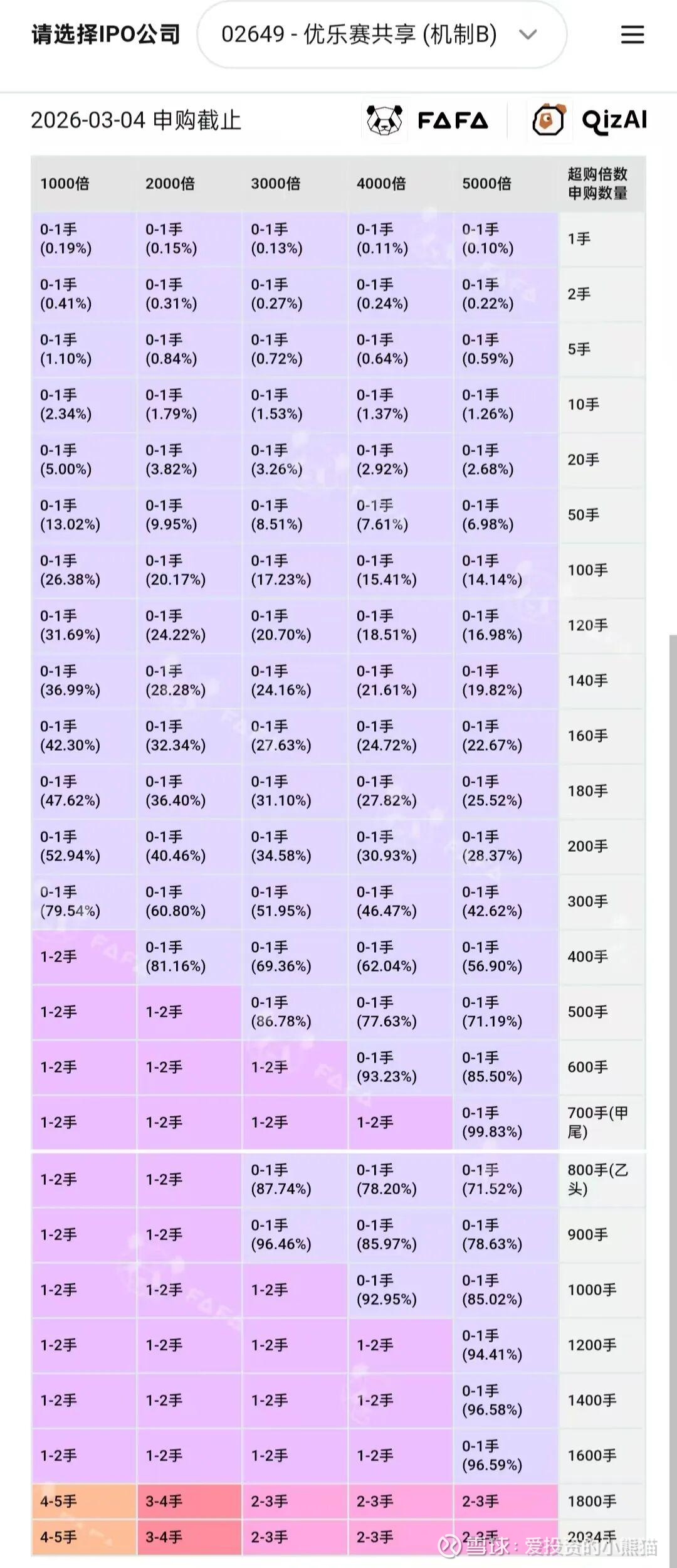 目前展现的孖展已超购52.34倍,到晚上已经100多了,大概率这票要几千倍,肯定又是所有挡位抽签了
