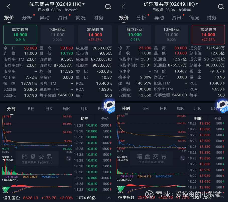 1.再看看优乐赛共享(02649.HK)暗盘情况