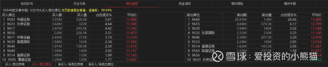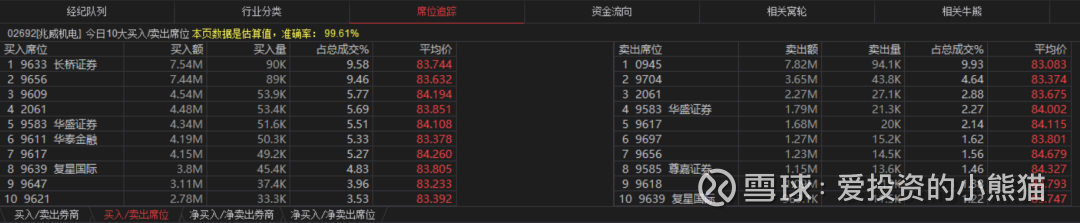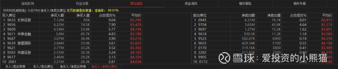兆威机电(02692.HK)买盘席位有9633、9656、9609、9611等,卖盘第一席位是0945。