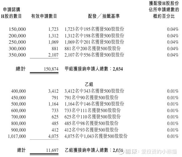 乙组有2034人中签,总共中签101.70万股,货值1118.70万港元。顶头槌货值5500港元,