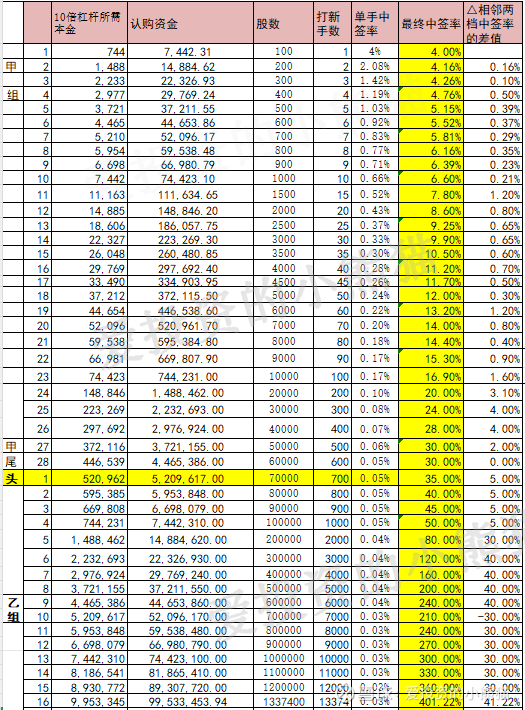 甲尾和顶头槌中签率是最高