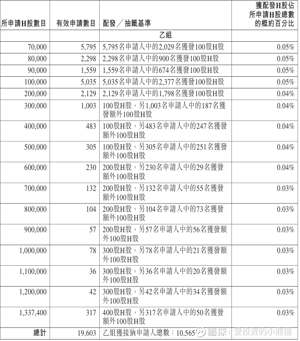优乐赛共享(02649.HK)乙组官方披露的中签名单: