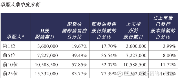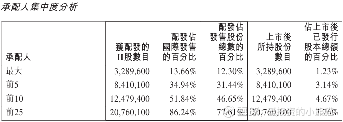 优乐赛共享(02649.HK)国配货是比较分散,前25大承配人上市后所持股份数目占上市后已发行股份总数16.97%。