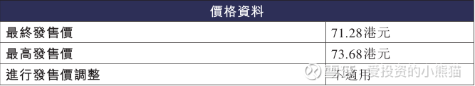 招股最终定价71.28港元,比发售价73.68港元下调了3.26%,19.07亿港元的募资,190.66亿港元的总市值,H股市值19.07亿港元,上市时流通市值12.55亿港元,发行比例10.00%。