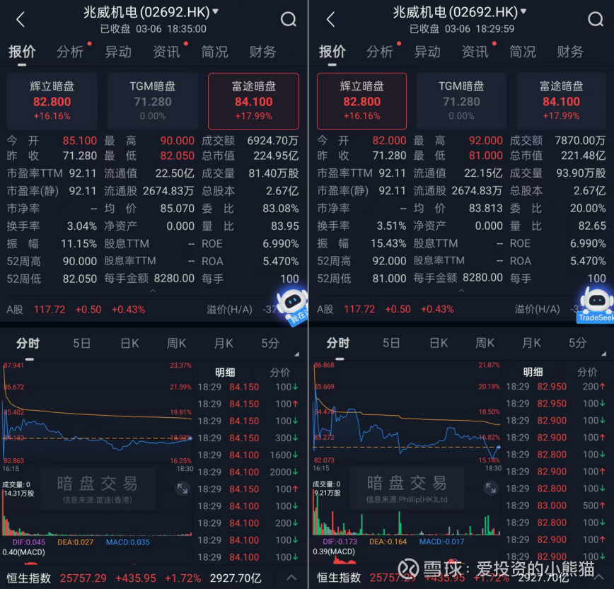 2.再看看兆威机电(02692.HK)暗盘情况: