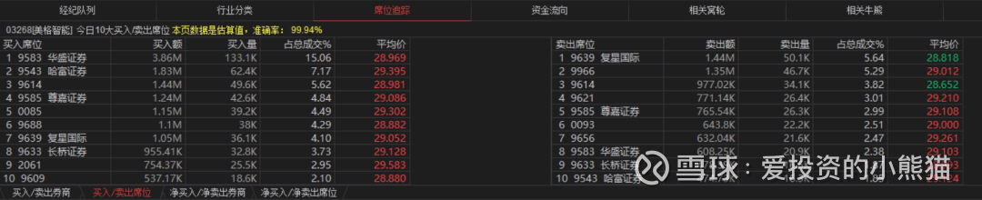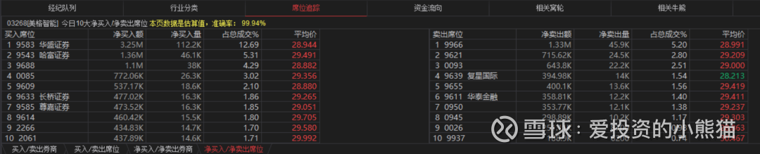 美格智能(03268.HK)买盘席位有9583、9543、9688、0085等,卖盘第一席位是9966,0950和0945分别在卖盘第七和第八席位。