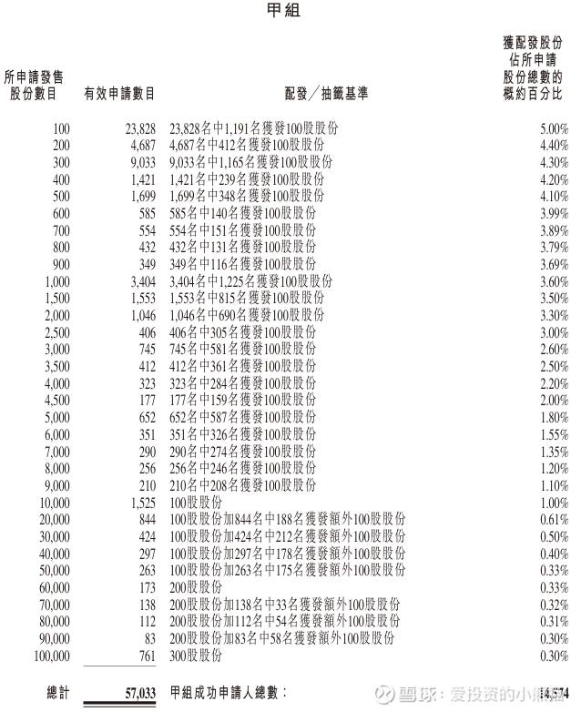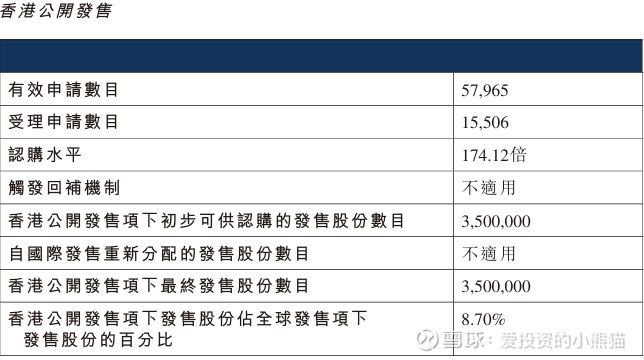配售情况:57965人认购,这次公配174.12倍,由于机制B分配,无回拨比率,国配有4.50倍,一手中签率5.00%,认购100手稳中1手,同时乙组932人申购,其中顶头槌申购61张,获配率0.40%-0.51%。