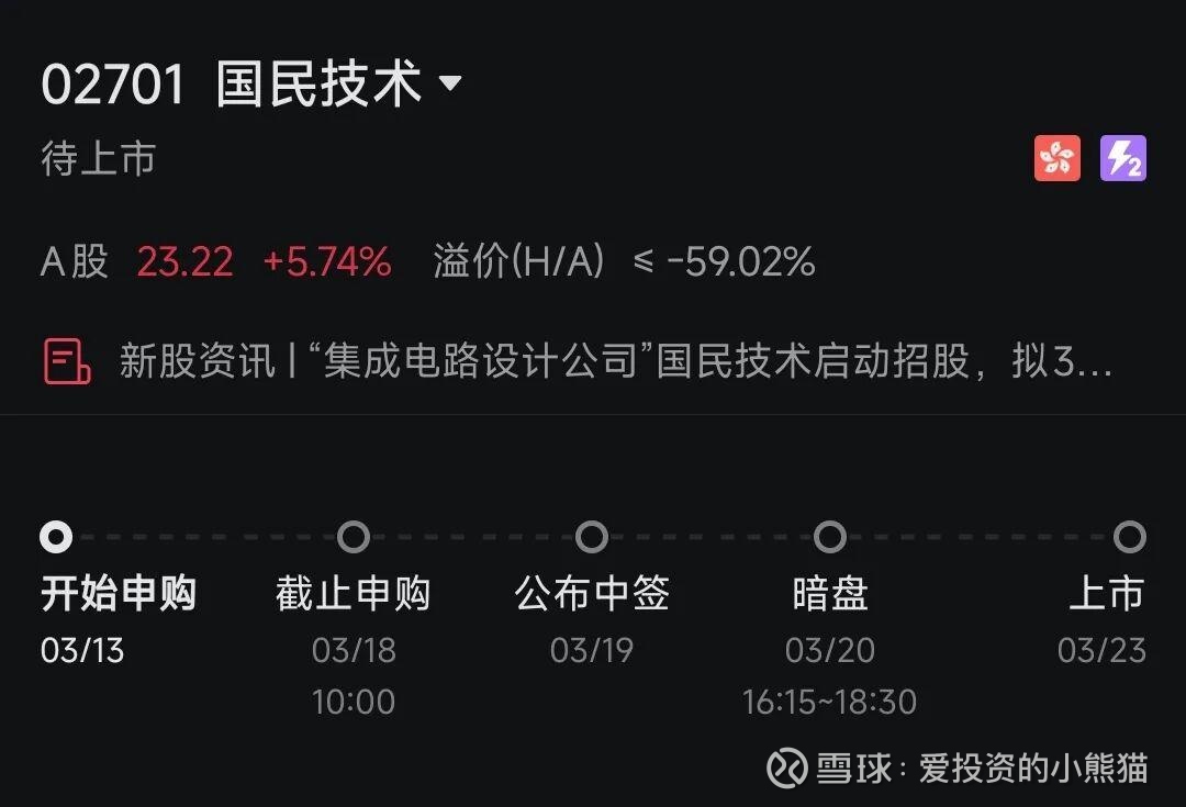 当前恒生AH股溢价指数为118.17点,处于历史低位。国民技术这个票。其实对应的a股也才135亿算是个小票了,多半就不完全是以基本面为逻辑了,也看国内的游资对他有没有兴趣了。毕竟这个折价了60%,可以算是这么多新股里面折价最多的一个。他也不发绿鞋,港股通首日就能买。