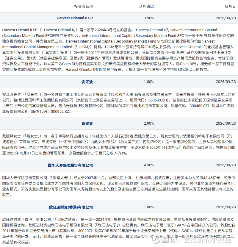 - 基石价值:引入国华人寿、嘉实、欣旺达等5家基石,合计认购约1.40亿港元,占比约13.6%,锁定期稳定市场情绪,尤其欣旺达作为产业链伙伴,强化业务协同与产业背书 。