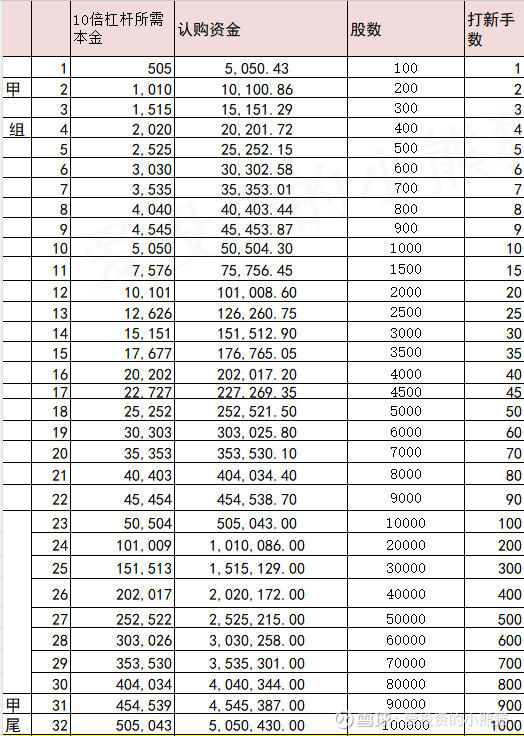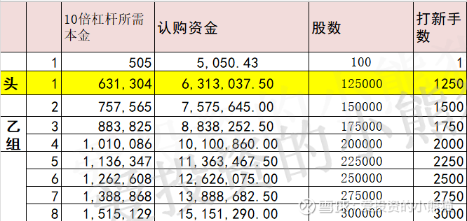 这个票乙头需要认购资金632万,乙组的各档融资所需要的本金还有融资金额对应如下表: